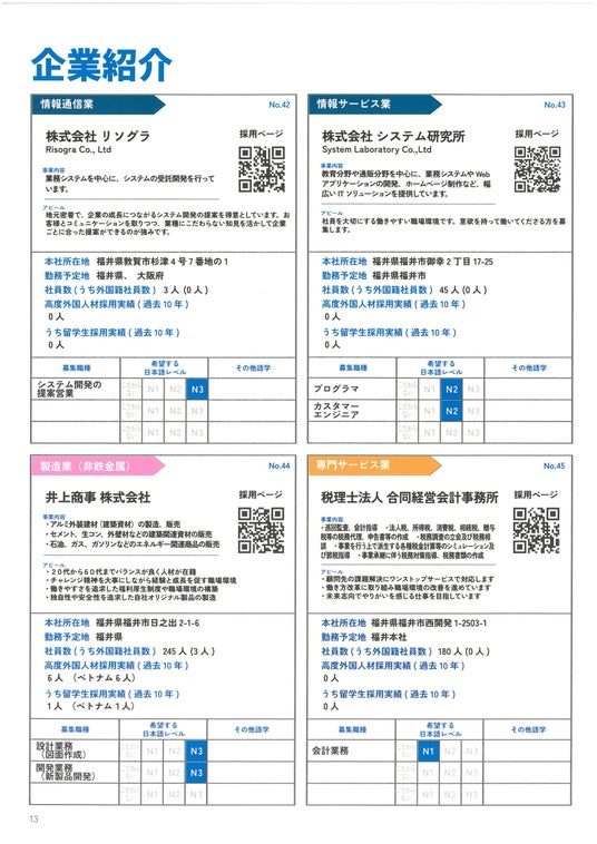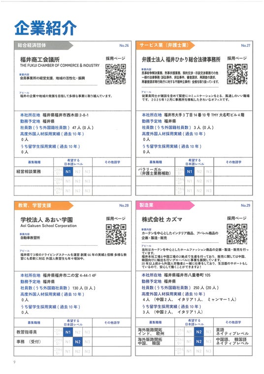 このオンライン合同企業説明会には、福井県内に本社または支社を有する幅広い業種の企業49社が参加を予定しています。
