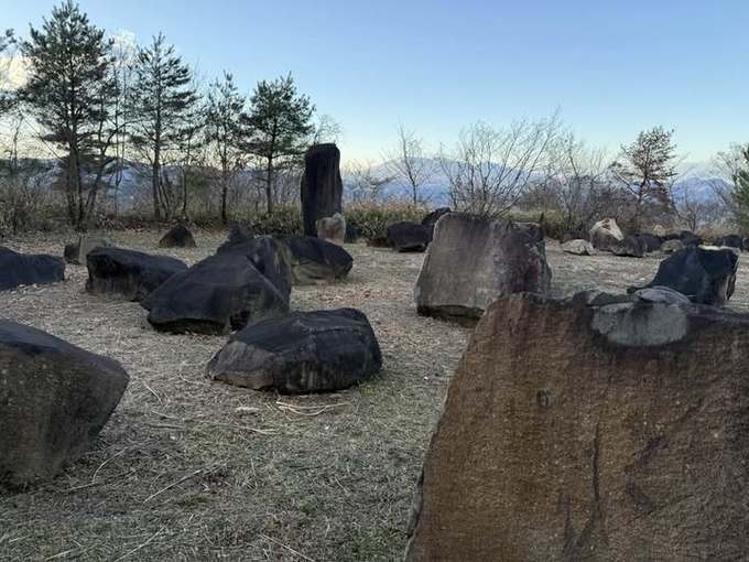 宮城県の南部、丸森町にある大蔵山。正面には蔵王連峰、反対側には牡鹿半島と太平洋がうっすらと見えます。ここに伊達冠石をテーマとするスタジオを展開する山田能資(たかし)さんに、ロンドンのセントジェームズパークの3倍の広さがあるという大蔵山をご案内いただきました。