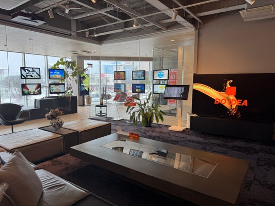 クラスコのオフィスは、ビジョン『GO FUN』を五感で体感できる空間設計が特徴です。ロゴや映像による視覚体験、独自のブランド音楽による聴覚体験、素材や照明による触覚体験、アロマによる嗅覚体験を融合し、来訪者の感情に直接訴えかけるブランド体験を構築しています。