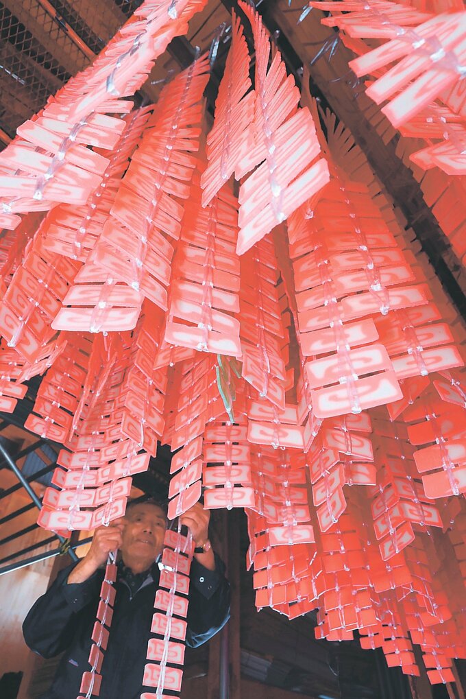 寒餅作りが富山県小矢部市高木出の中田農園で最盛期を迎えている。28日も色鮮やかな餅がカーテンのようにつるされた。