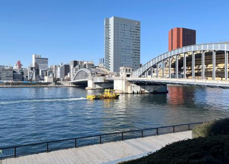 拝観を終え隅田川方面へ歩いた。川岸にはかつて築地と月島を結んだ「勝鬨の渡し」の碑が立つ。勝鬨橋からゆったりと流れる川を眺め、朝の街で心と体が元気になったのを感じた。