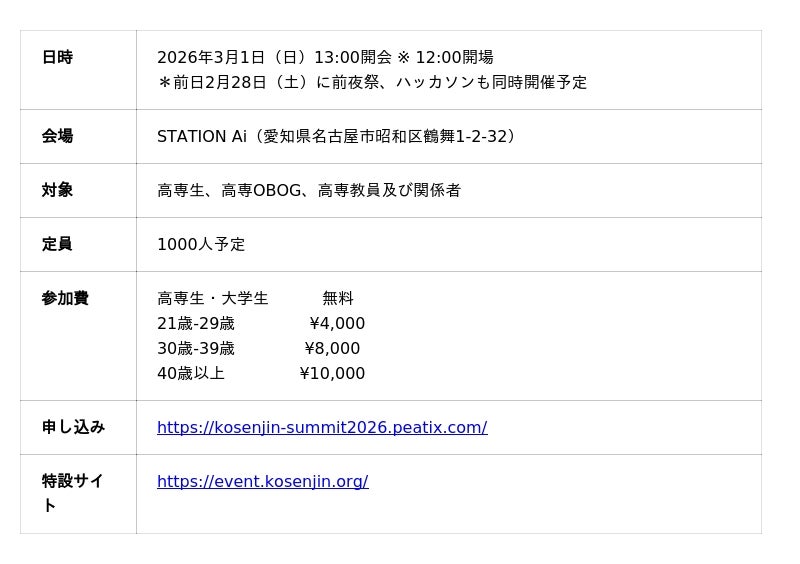 学生申し込みはこちら:https://withkosen.prossell.jp/25-26/nagoya