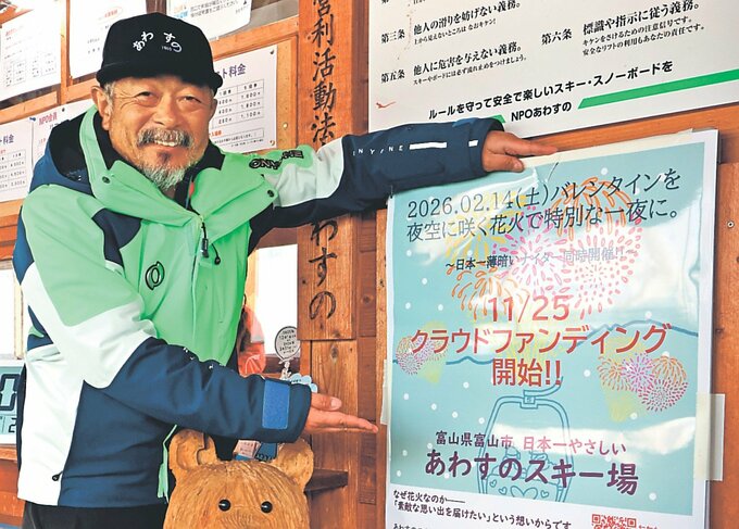あわすのスキー場(富山市粟巣野)は14日のナイター営業に合わせ、ゲレンデでバレンタインデーをテーマにした音楽花火を打ち上げる。スキー場の活性化につなげようと初めて企画し、ハート型の花火など約400発が冬の空を彩る。