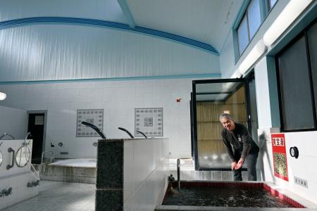 帰途、京町家風の外観に引かれて銭湯「テルメ末広」に立ち寄った。「どこか懐かしく、ほっとしてもらえる場所に」と、3代目の徳江康幸さんが話す通り、木を生かした温かみのある内装は心地よく、つやつやの床や天井の高い浴室も気持ちが良い。常連さんに好評だという漢方薬湯に漬かると体も心もほどけた。