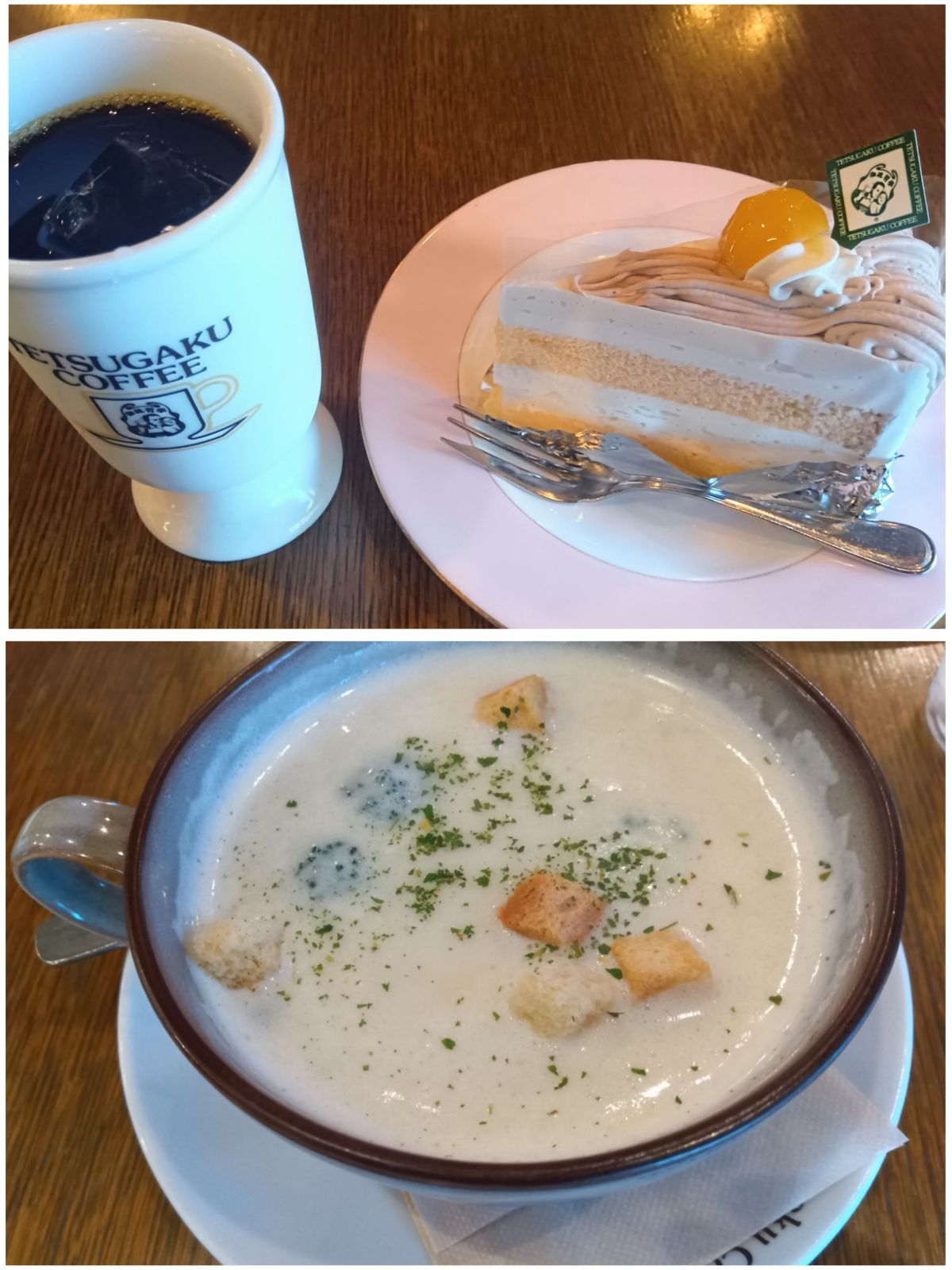 魚津水族館からの帰路、喫茶店でひと休み。子供はあったかクラムチャウダー、私はコーヒーとケーキで、ほっこりしました😊