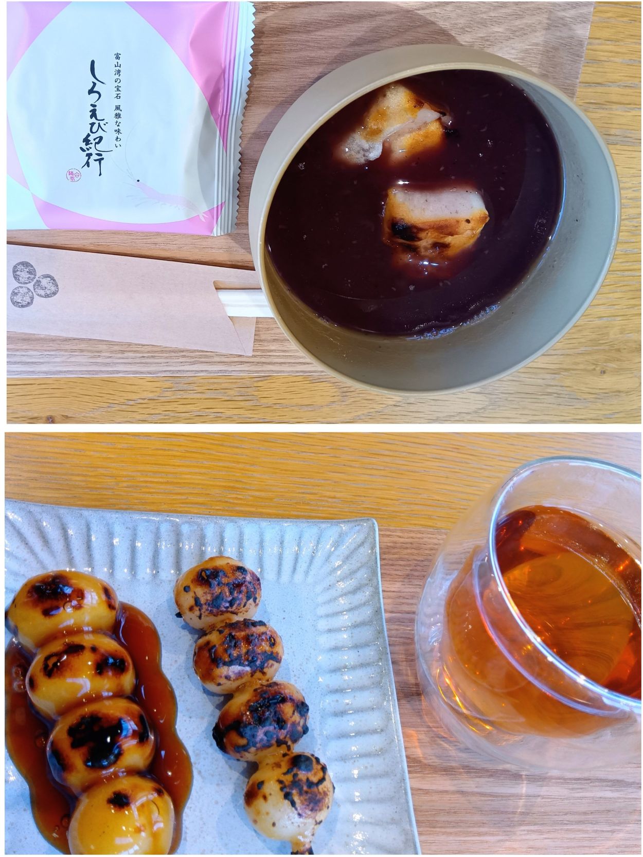 子供を学校まで迎えに行った帰り、婦中町の米菓専門店でおやつタイム。ぜんざいとお団子セットをいただきました。