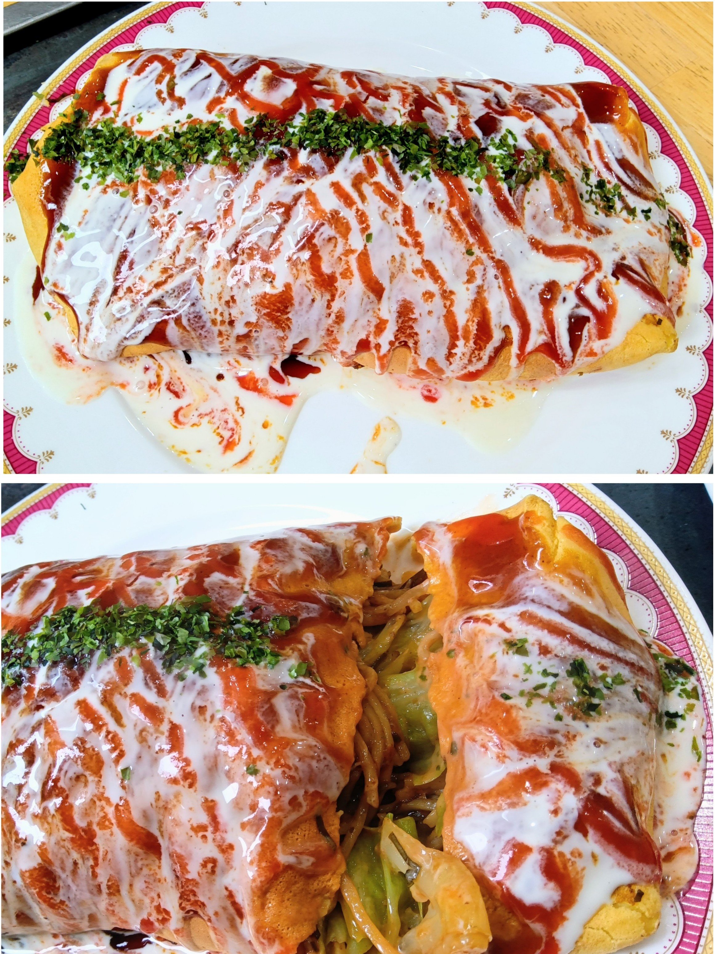 そしてお店特製のクレープ焼きそばは、お好み焼きの生地で焼きそばを包んだ逸品。