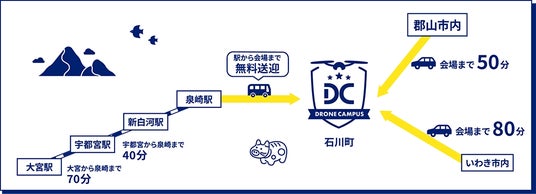 「ドローンキャンパス 福島の空」は、地域の拠点である「沢田自治センター」を講習会場として活用します 。廃校や遊休施設を利活用する当グループのノウハウを活かし 、広々とした環境でドローン操縦を学ぶことが可能です。本スクールは、郡山市内から車で約50分、いわき市内から約80分という立地にあります。また、県外からの受講も想定し、宇都宮駅から最寄りの「泉崎駅」まで最短40分というアクセスの良さを活かした、会場までの無料送迎サービスも実施します。