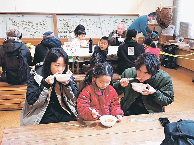 間宮寿頼館長補佐が講師を務めた。参加者は県内で捕らえられたニホンジカが解体される様子を見学し、体の部位や特徴を学んだ。シカ肉を使ったシチューも試食。「おいしい」「肉がやわらかい」と味わった。
