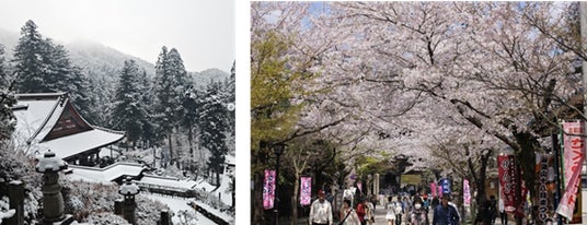 ●西国三十三所最終霊場 谷汲山 華厳寺(たにぐみさん けごんじ)の桜 【見頃:4月上旬~下旬】「谷汲さん」の愛称で親しまれる、西国三十三所巡礼の最終霊場。参道に軒を連ねる土産物屋が賑わいをみせつつも、雪の降る冬は静かに参拝できる厳かな雰囲気が感じられます。