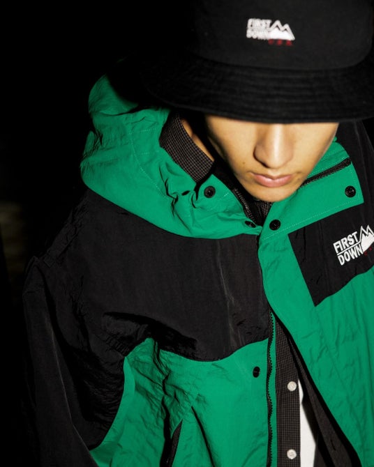本コレクションのテーマは「NEW MIX OF CULTURE」と題して、1980年代のメンズカルチャーをベースに、都会と自然、ストリートとアウトドアといった異なる要素をミックス。シーンを限定しない自由なスタイルを、FIRST DOWN USAらしい視点で再構築しています。