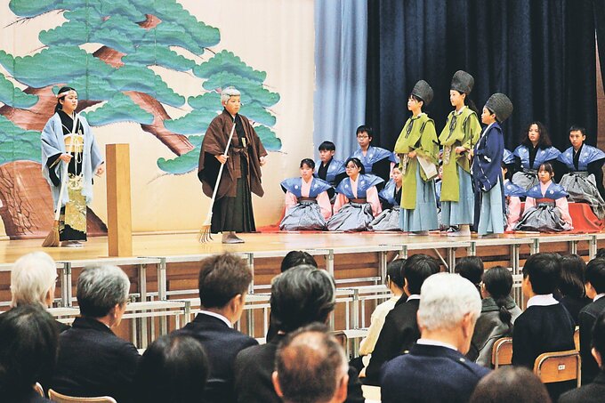 祝芸では4年生18人が舞「かたかごの花」を、5年生27人が能「高砂」を披露し、拍手が送られた。