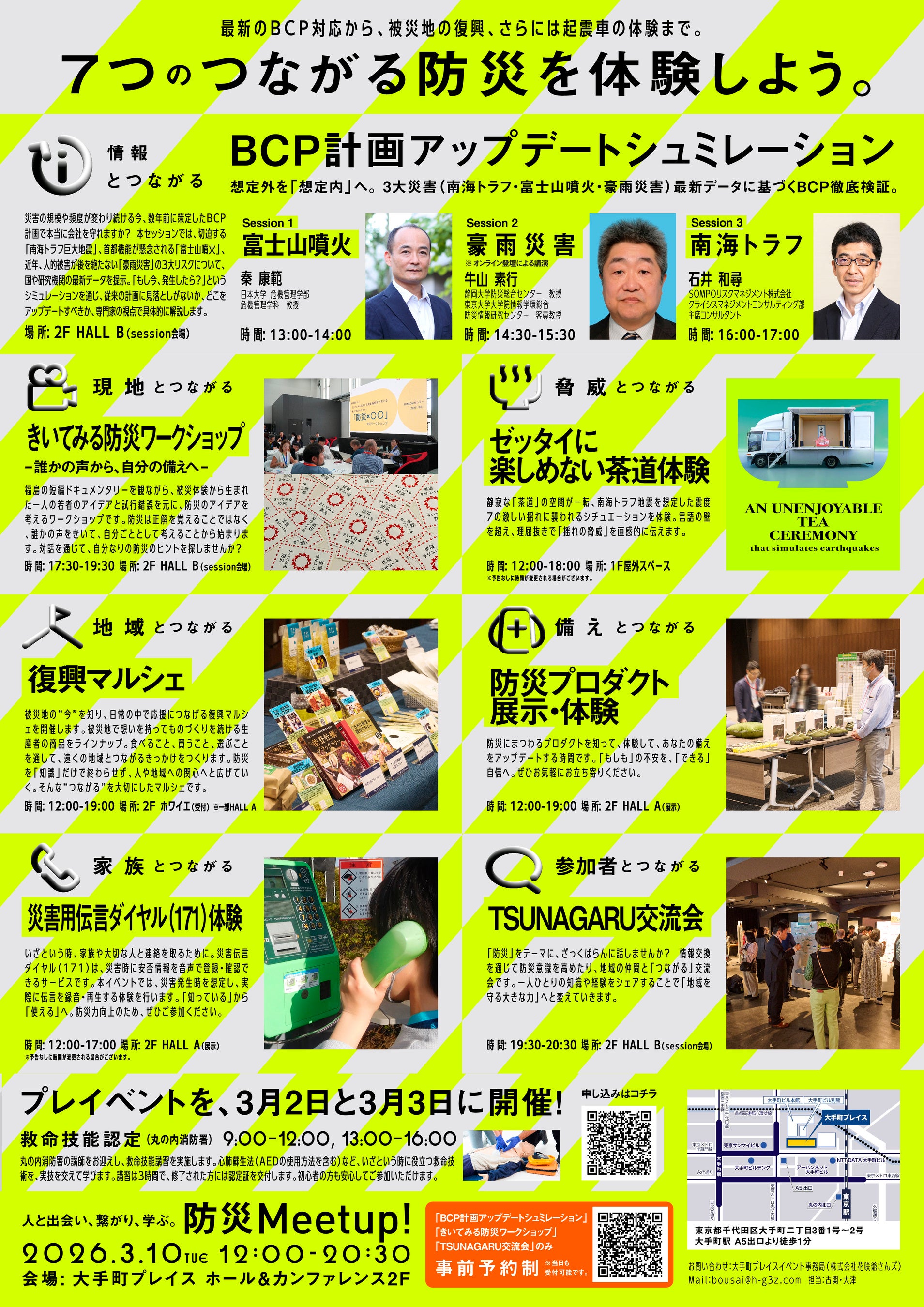 株式会社花咲爺さんズ(東京都港区 代表:加藤友教)は、東日本大震災から15年を迎える前日3月10日(火)に、大手町プレイス(東京都千代田区)にて、防災イベント「防災meet up!(ボウサイ ミートアップ)」を開催いたします。