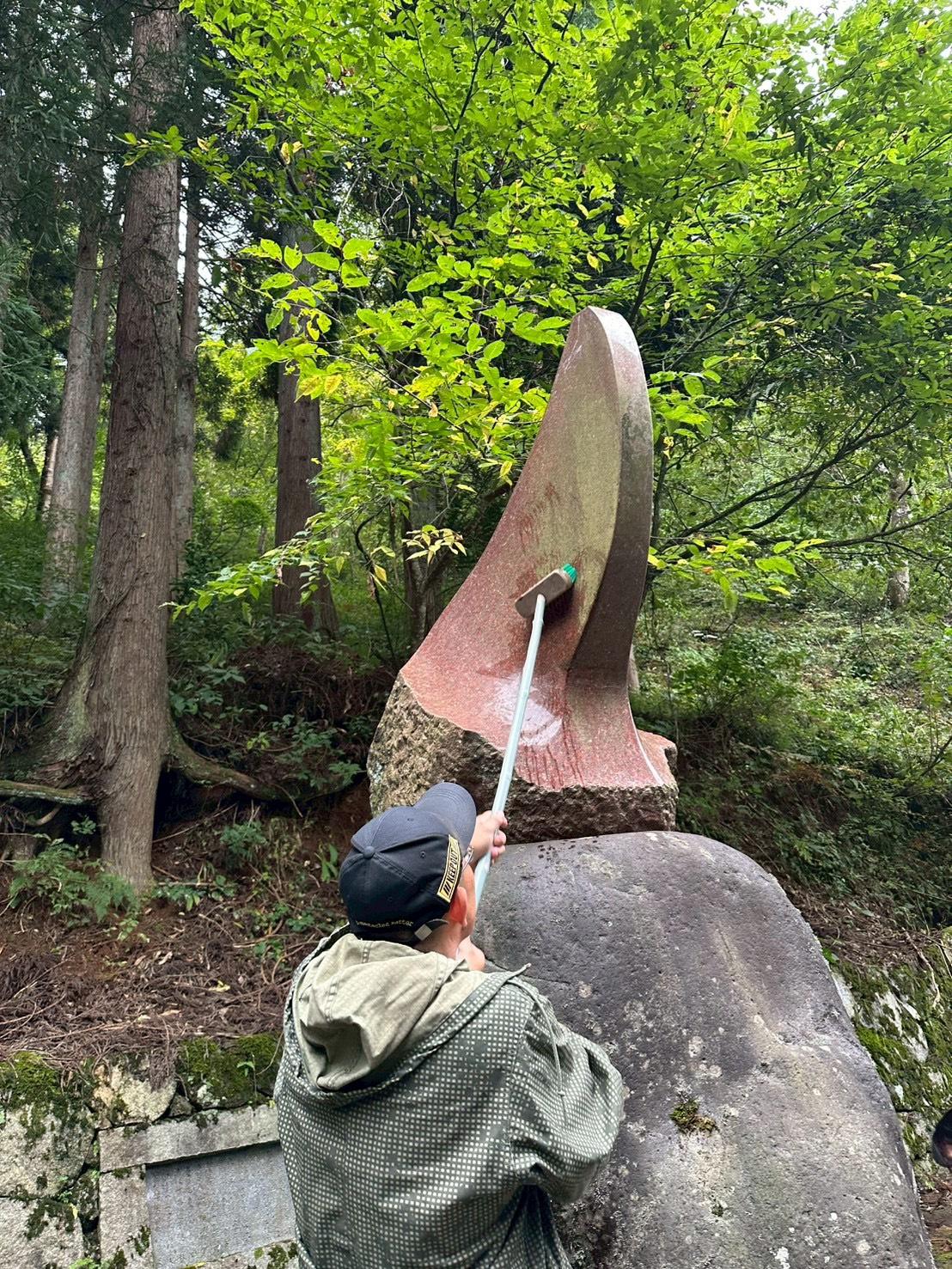 2025年10月には郷義弘の顕彰碑を訪れて清掃した=魚津市内
