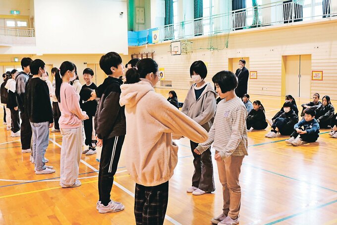 音川小5年の場家早彩さん(11)は「古里小の子と一緒に低学年の子を引っ張りたい」と意気込む。古里小5年の牧野城太郎さん(11)は「活動を通じて仲良くなり、新学期が楽しみ」と笑顔を見せた。