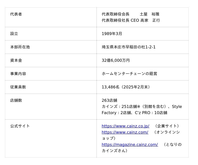 株式会社カインズは、29都道府県下に263店舗を展開するホームセンターチェーンです。