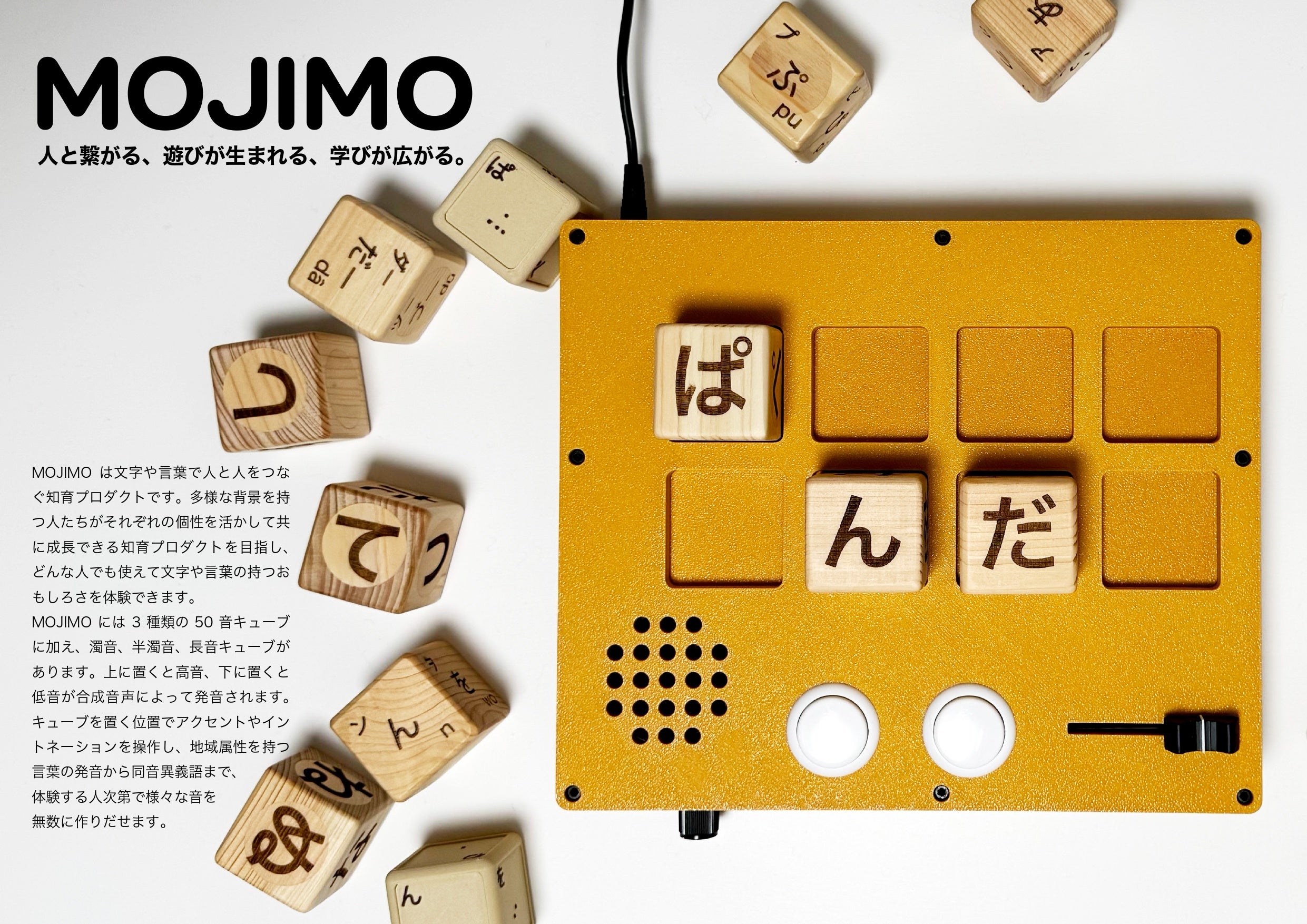 言葉・文字の発音で人と人をつなぐことを目指す知育プロダクトの提案です。文字が印刷されたキューブを置くと機器から音が出て、さらに上段下段で音の高低が選択できます。キューブを置く位置でアクセントやイントネーションを操作し、地域属性を持つ言葉や同音異義語まで、文字だけでは表現できない感覚を共有できます。