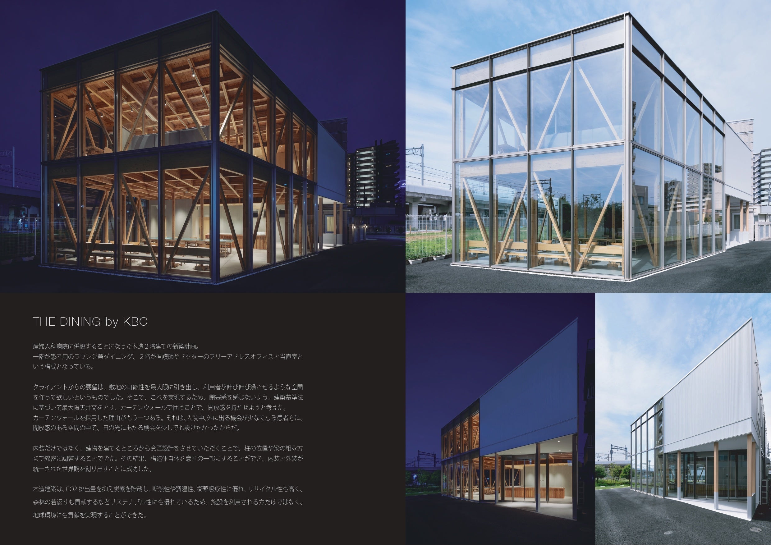 産婦人科病院に併設の、ダイニングと医療者用オフィスの事例です。カーテンウォールを活用した解放感のある空間にすることで、入院中に外に出ることが少なくなる患者に、外を感じ日の光を浴びる機会を提供しています。