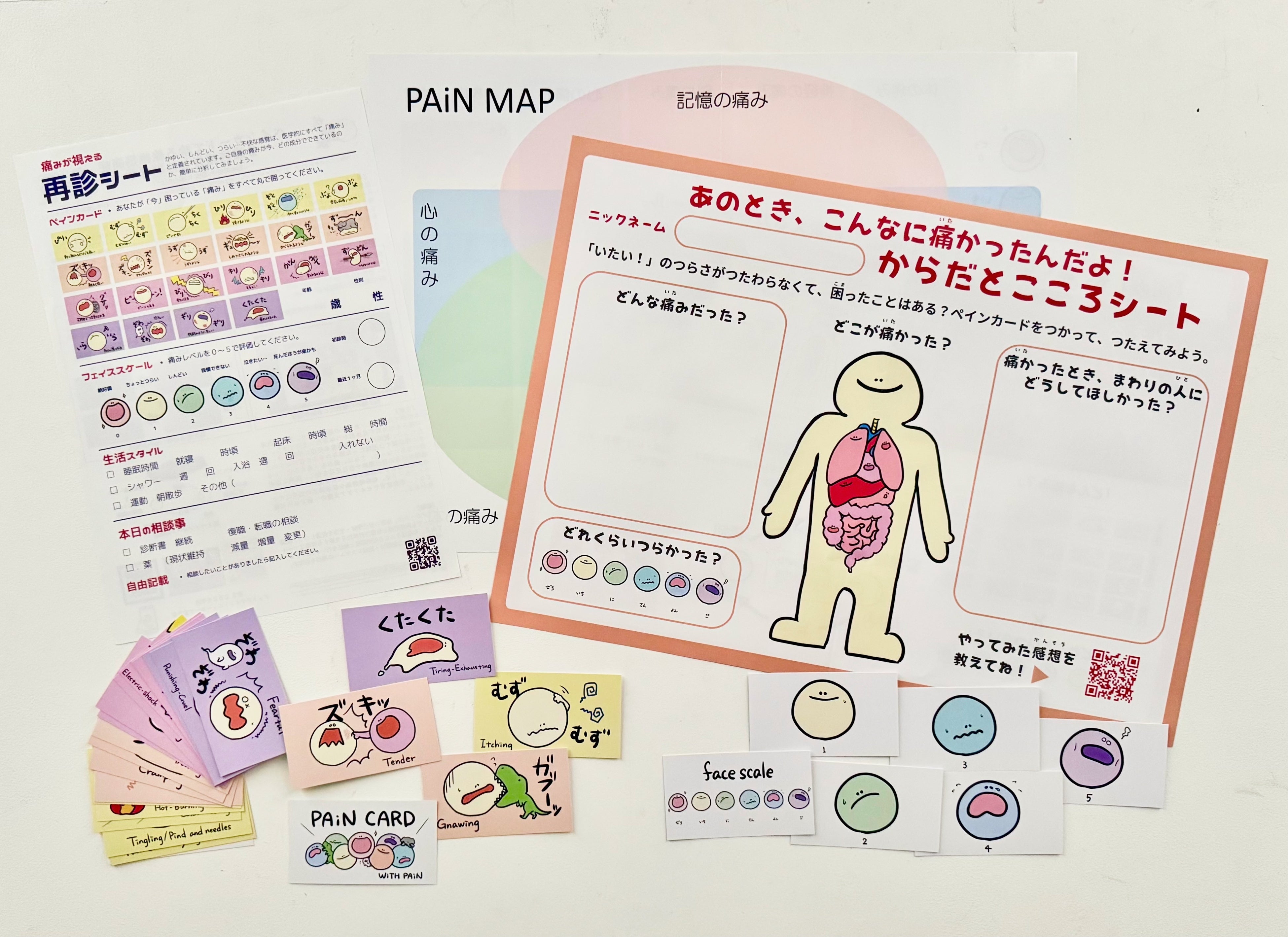 詳細が伝えにくい感覚である「痛み」をイラストとオノマトペで「情報」に変えることを目指したカード型ツールの提案です。皮膚・筋肉・内臓など全身を網羅して痛みの質を22種に分類しており、直感的に痛みを表現することができます。痛みの情報を医師や家族と共有することで円滑なコミュニケーションを支援します。