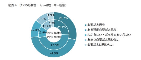 独立行政法人中小企業基盤整備機構が2024年12月に公表した「中小企業のDX推進に関する調査」によると、DXを「必要だと思う」「ある程度必要だと思う」と回答した企業は73.2%にのぼる一方、「既に取り組んでいる」「取り組みを検討している」と回答した企業は42.0%にとどまっています。