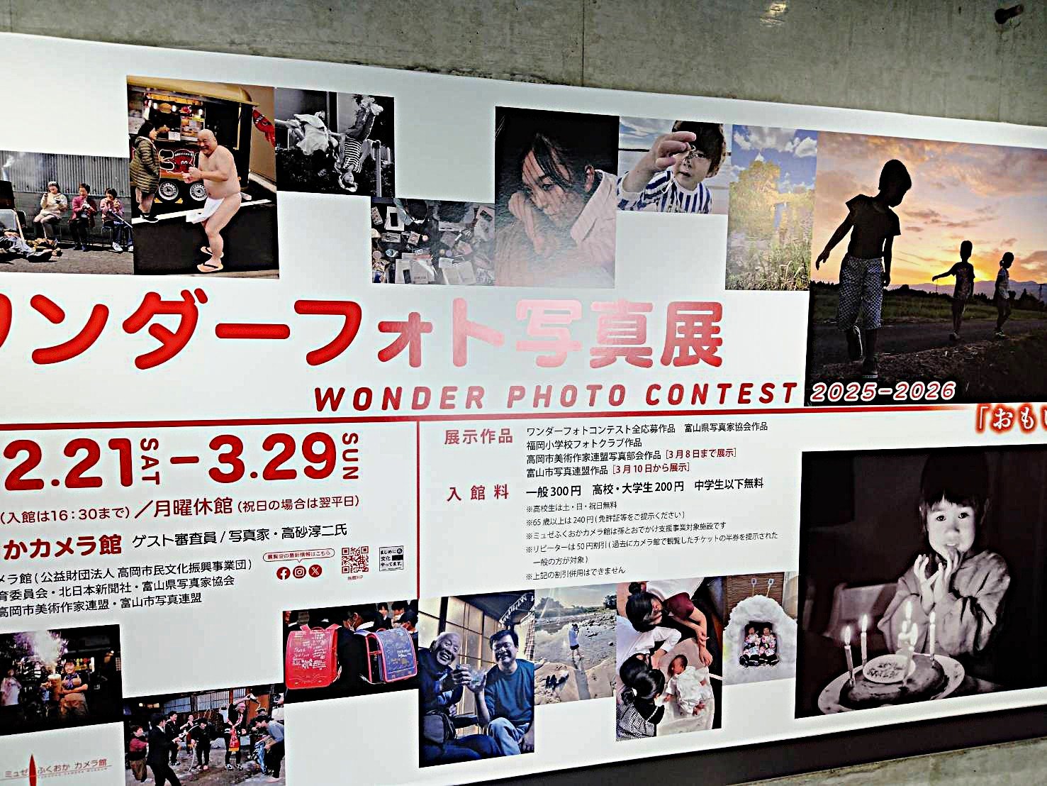 春休みのおでかけに♪ワンダーフォト写真展📸 2026年3月2日 15:00 Sママさん コノコトレポーター 高岡市のミュゼふくおかカメラ館で開催されているワンダーフォト写真展へ行ってきました🏃♂️ こちらは孫とお出かけ割引もやっています! 県内外の方の作品がたくさん展示されていて、身近な写真もあり、見ていて飽きなかったです。 子供たちも「これすごい」「これ見て!」と楽しんでいました。 館内は古いカメラの展示もあり、興味深いものでした✨ 3月29日まで開催しているので、春休みのお出かけに是非おすすめします💮 高岡・ふくおかカメラ館コンテスト、水野さん(富山南高1)ジュニア大賞 一般は竹内さん(新潟) ミュゼふくおかカメラ館(高岡市福岡町福岡新)のワンダーフォトコンテストの入賞者が決まった。大賞は一般部門が竹内秀明さん... ワンダーフォト写真展 2025-2026 “写真のちから”で地域と世代を超えたつながりをめざし、ミュゼふくおかカメラ館で毎年開催している公募写真展。同館が開催す... この機能は会員限定です。 お気に入りの記事を保存し、マイページで読むことができます。 ログイン 会員登録はこちら