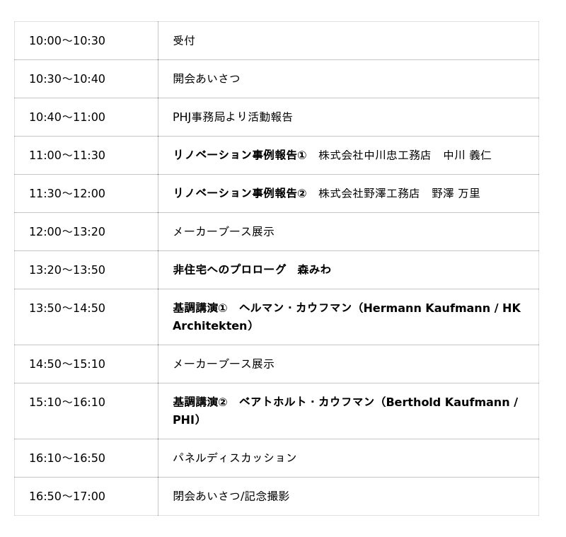 記念フォーラムのスペシャルゲストとして、建築デザインと性能の融合そして中規模木造のモジュール化に長年取り組むオーストリアの巨匠ヘルマン・カウフマン氏と、独パッシブハウス・研究所で長年日本の物件と伴走してきたベアトホルト・カウフマン氏の同時来日が決定しました!これまで新築・戸建て住宅一筋だった実務者に新たな切り口や道しるべを見出すべく、国内のリノベーションによるパッシブハウス認証事例や非住宅や中規模木造におけるパッシブハウス認証の可能性を探ります。会場内には高性能窓や熱交換換気、環境負荷を抑えた断熱材や最新の気密測定器等の展示もございますので是非この機会にお集まりください。※日本語⇔英語 同時通訳あります。