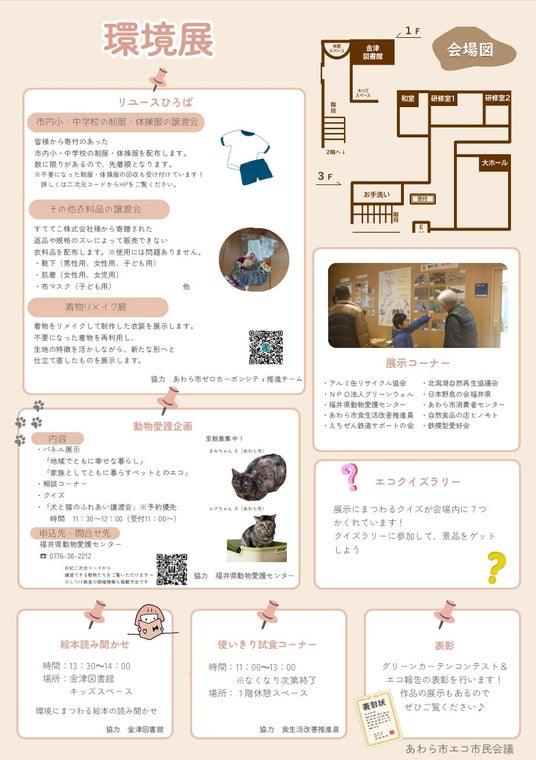 あわら市エコ市民会議は、3月1日(日)に金津本陣IKOSSAで、体験しながら環境について学べる「環境展」を開催します。