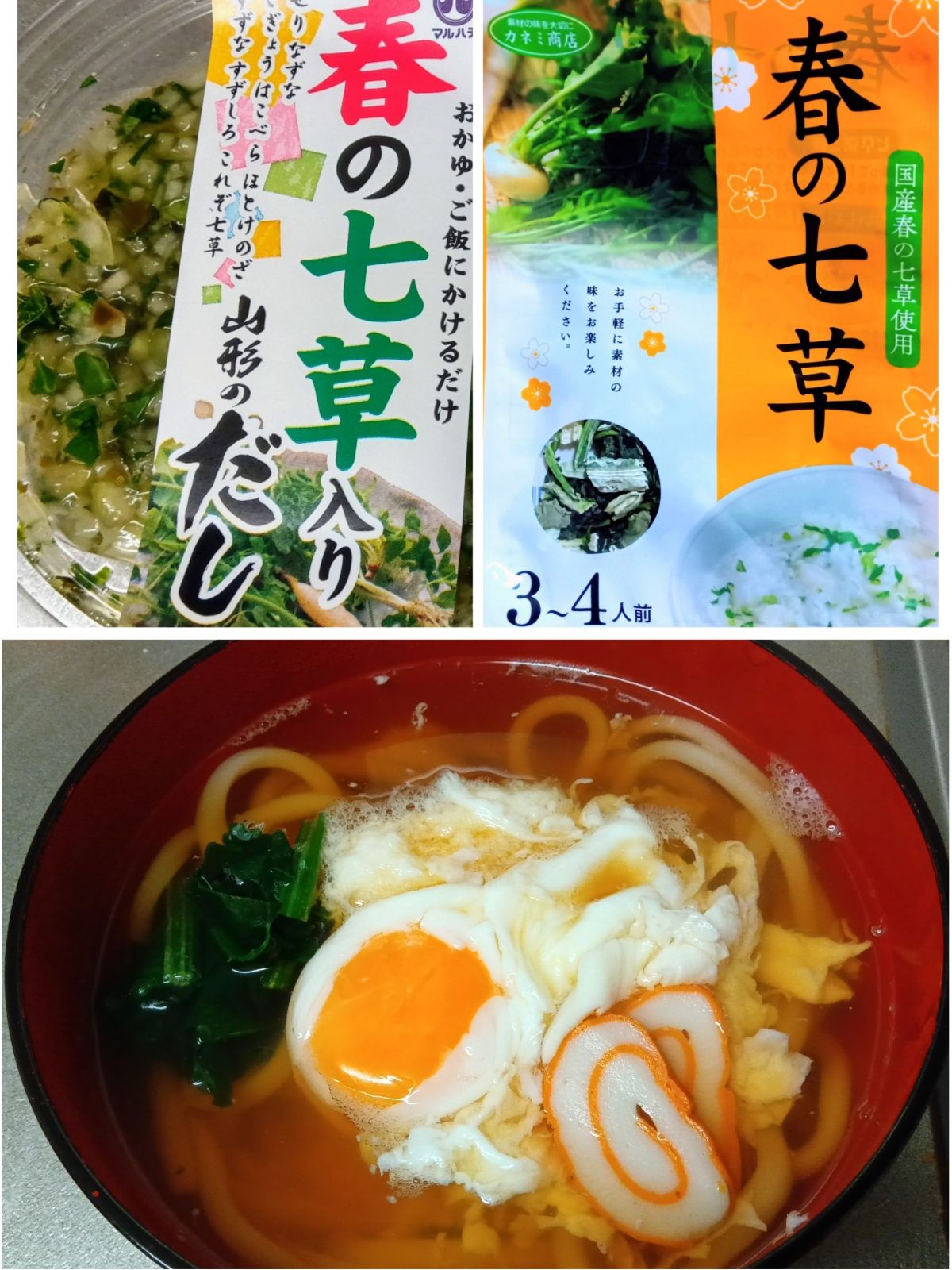 七草は生ではなく、手軽なフリーズドライなどを使い、うどんは大好きなとろろも乗せました🥰