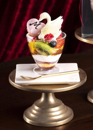 コロンバン原宿でかつて人気を博したメニューをまとめて、持ち運び可能なカップデザートとしてアレンジ。ラズベリーソースやイチゴを重ねたショートケーキの上に、昔ながらの焼きプリンをのせた。スワン形のチョコレートやマカロンを添え、ロリータファッションの世界観を表現している。