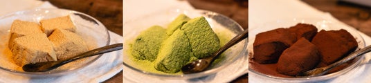 (画面左から)生わらびもち 和三盆きな粉/和三盆抹茶/和三盆チョコ