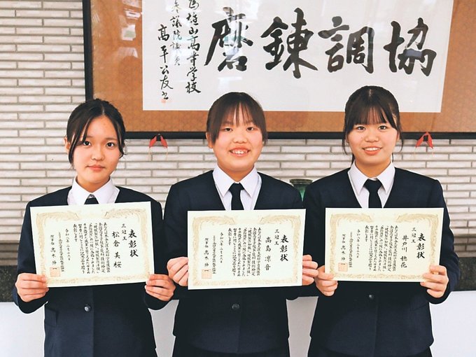 雄山高校(富山県立山町前沢)の生活文化科3年生3人が、全国高校家庭科技術検定の「食物調理」「被服製作和服」「被服製作洋服」で1級に合格した。同校では毎年、3年生が3部門で合格する「三冠」達成を目標にしており、3人は27日、同校で喜びを語った。