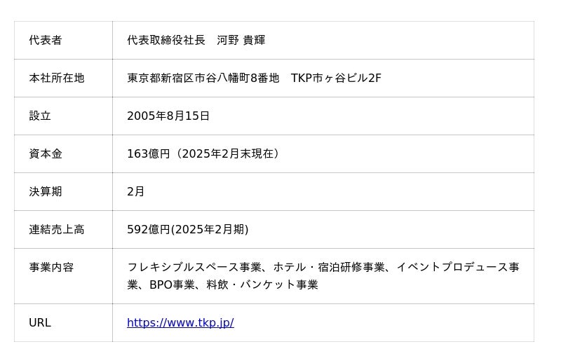 【株式会社ティーケーピー 会社概要】