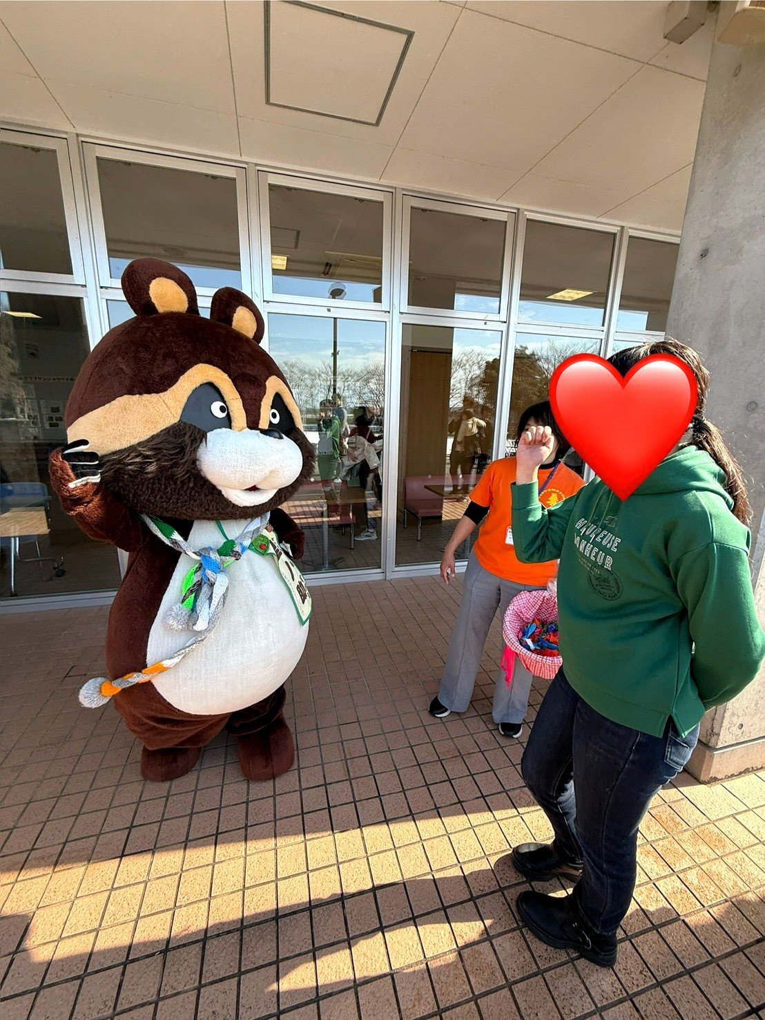 動物園のレストランでお弁当を食べようとしたら、何故か行列が。バレンタイン企画の「里の助くんとジャンケン」の列でした。