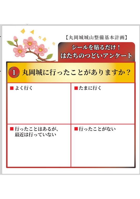 形式:3つの設問にシールで回答回答シールは、「丸岡城開運おみくじ」ポチ袋に同封して配布します。