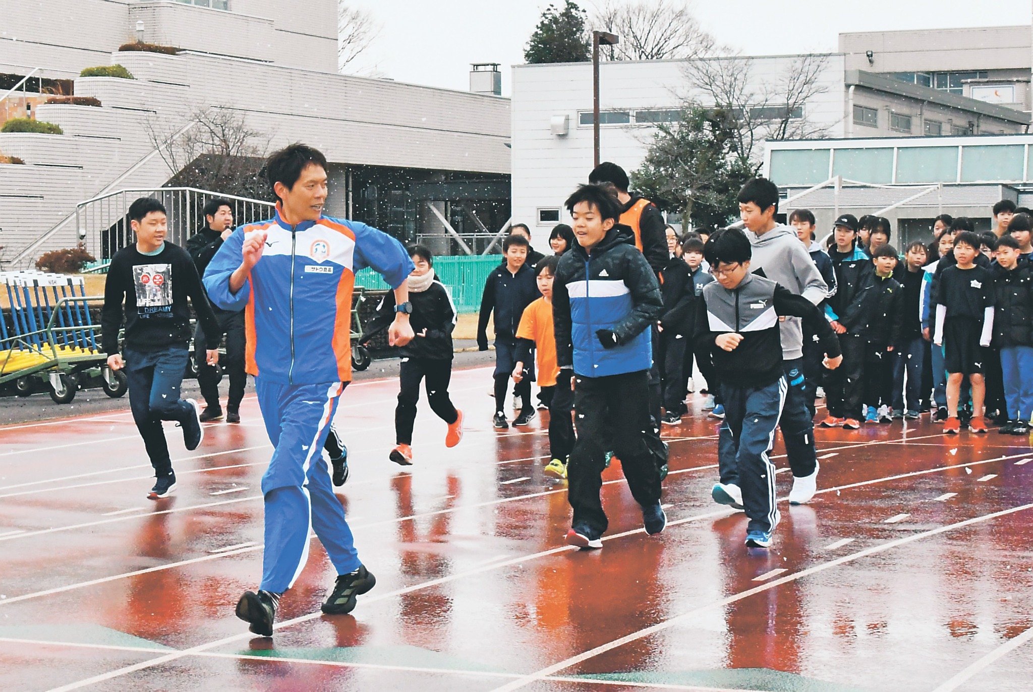 この日は、高岡市の「こども陸上クラブホップ」(川邉真(まこと)代表コーチ)が開いた記録会の一環で、以前から川邉代表コーチと交流のあった鈴木さんが特別ゲストとして招かれた。