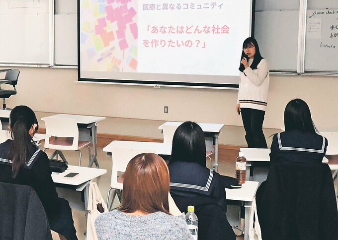 同団体は、文部科学省の留学支援制度「トビタテ!留学JAPAN」の奨学金を利用して学んだメンバーで構成。この日は5人が、滞在した国の医療制度や現地で感じた文化、価値観の違いをそれぞれ発表した。薬学部の大学生は「興味のあることに挑戦してみると、将来の夢や未来の自分のイメージを描くことができる」とアドバイスした。
