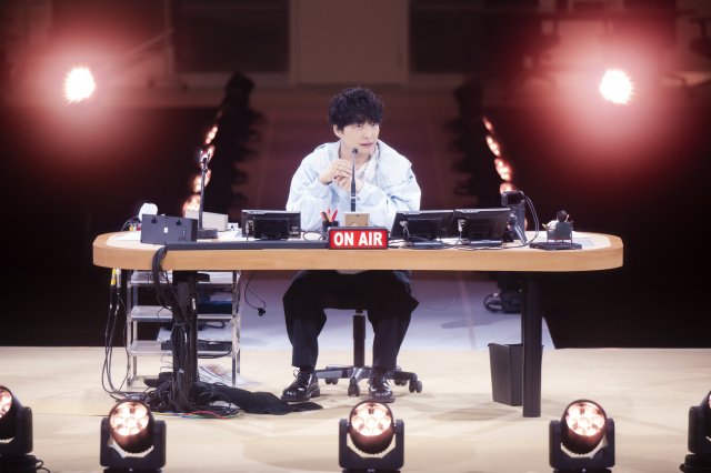 開演時間前、会議室を模したサブステージには、すでに星野源の姿が。いつもの放送前のように、リスナーからのメッセージなどを確認する様子を見せる心憎い演出で早くも魅了した。それだけではなく、『星野源ANN』と同じ曜日の『オールナイトニッポン MUSIC10』(後10:00)を担当している鈴木杏樹が“武道館のどこか”から『MUSIC10』特別編の生放送を届けた。鈴木が、自身の選曲として星野の「恋」「光の跡」を流すと、会場からも拍手が広がった。