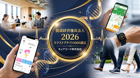 医療・ヘルスケア分野のアプリ・Webシステムを開発するキュアコード株式会社(代表取締役:土田史高 本社:富山県富山市 以下キュアコード)は、経済産業省と日本健康会議が実施する「健康経営優良法人2026(中小規模法人部門)」において、特に優れた取り組みを実践している上位法人「ネクストブライト1000」*に選出されたことをお知らせいたします。