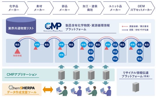 こうした課題を受け、製品含有化学物質情報を起点として、サプライチェーン全体で情報を連携・管理するCMP(製品含有化学物質・資源循環情報プラットフォーム)の社会実装に向けた検討や実証が、政策的にも進められています。