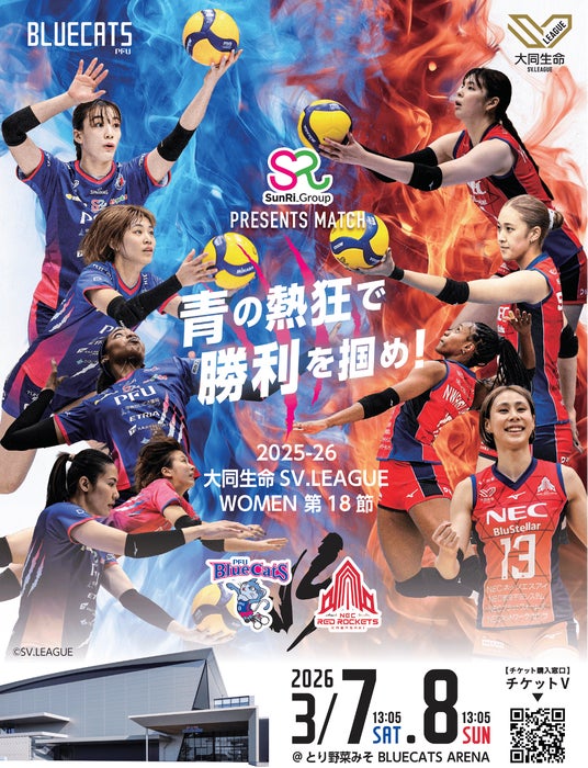 ―2026年3月8日(日)サンリーグループpresents 2025-26 大同生命SV.LEAGUE WOMEN 第18節vsNECレッドロケッツ川崎@とり野菜みそ BLUECATS ARENA―