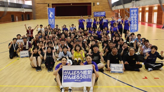 「がんばろう能登 がんばろう石川」は、地元のプロスポーツチームとして、令和6年能登半島地震復興支援において、「自分たちに何ができるか?」「自分たちは何をすべきか?」を選手・スタッフで深く考え、バレーボールで石川県民に対する支援の輪をつなぐことを使命として取り組むプロジェクト。「がんばろう能登 がんばろう石川」のスローガンを掲げ、石川県民に対する支援の輪を“つなぎ”、継続した復興支援活動、募金活動やチャリティグッズ販売、被災された皆様への「モノとこころの支援」を実施しています。