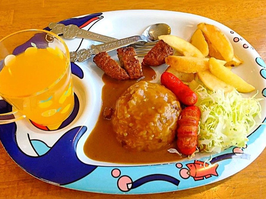 下の子たちは、お子さまカレーを注文しています。オレンジジュースやポテトがついてきます。