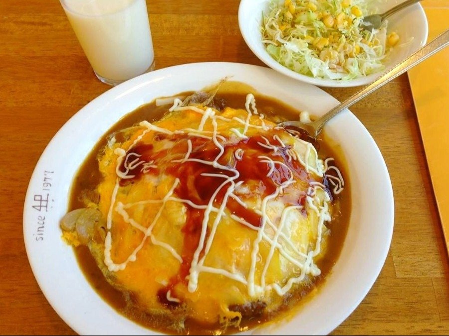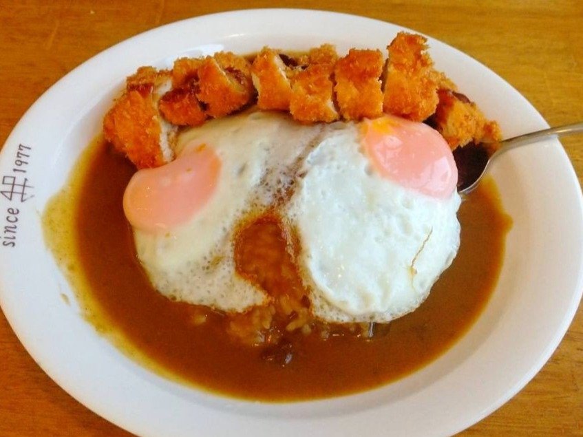 「マッシュルームと玉ねぎを炒めて薄焼き卵でとじたものがカレーにのってるんだよ!」