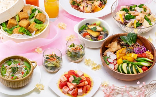 このたびは春の味覚を存分に楽しめるメニューとして、鰆をイタリア・ナポリの伝統的な調理法で仕上げた「鰆とアスパラのアクアパッツァ」や、大豆ミートを爽やかなレモン照り焼きに仕上げて野菜をふんだんに盛り込んだ「大豆ミートのレモン照り焼き・春の彩りボウル」、見た目にも春の彩りを感じられる「桜えびとたたき胡瓜の生姜風味」や「苺とトマト・豆乳チーズのカプレーゼ」など、旬の恵みを取り入れ心身をさわやかに目覚めさせる品々をご用意いたしました。