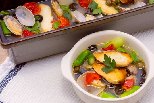 鰆とアスパラガスのアクアパッツァ