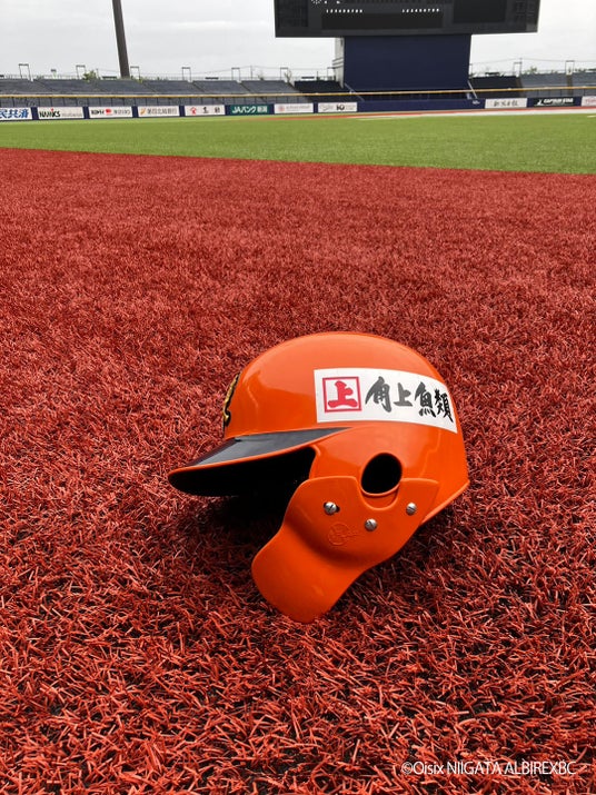 スポンサー契約締結に基づいて引き続き、オイシックス新潟アルビレックスBCヘルメット左サイドに角上魚類のロゴを掲出して頂きます。