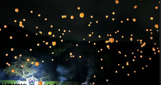 約250基の桜色ランタンに願いを込め、