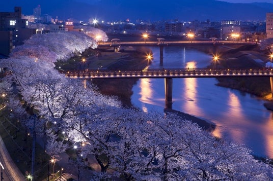 足羽川の桜並木だけでなく、足羽神社、福井城址、福井駅前、一乗谷朝倉氏遺跡までもがライトアップされ街全体が春の訪れを祝福。静寂な夜の散歩は、喧騒を離れてゆっくりと桜を愛でたい大人の旅行者に最適な時間を提供します。