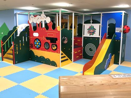 2021年にオープンした屋内多目的施設。「こどもの国」エリアには、全身を使って遊べる大型複合遊具をはじめ、ネット遊具やボルダリングボードなどがそろう。人工芝を敷いた「多目的室」はテニスコート約2面分の広さがあり、走り回って遊んだり、スポーツの練習も可能。隣接するふれあい広場(屋外)にはふわふわドームなどの遊具も設置している。