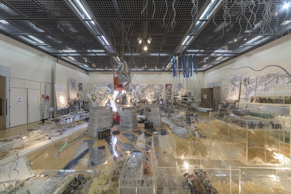 南砺市出身、砺波市在住の造形作家・岡部俊彦が「世回樹(せかいじゅ)・生瞑樹(せいめいじゅ)・進迦樹(しんかじゅ)」の3つのコンセプトのもと、発電所美術館の展示空間で8つの異なる世界を表現する。金属製の部品や線材、電子機器のパーツなどで構成された立体造形物や、大量かつ大規模なドローイングなどを駆使したインスタレーションは見ものだ。
